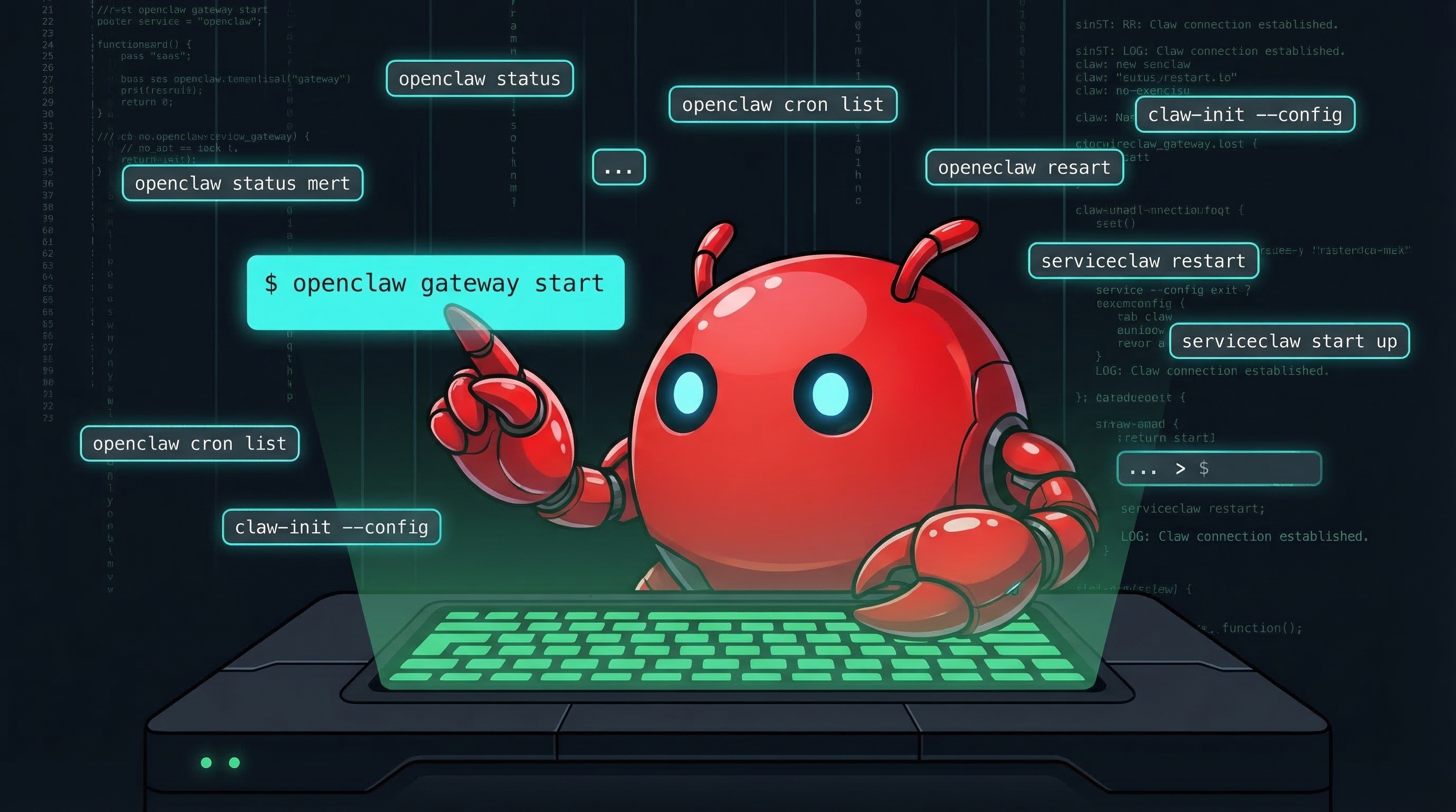 Every terminal command you need — gateway control, health checks, cron, nodes, models, and more. Organized by category, ready to copy.